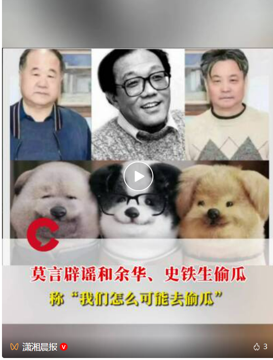 莫言辟谣和史铁生余华偷瓜,称都是网友们杜撰故事:我们怎么会去偷瓜呢?