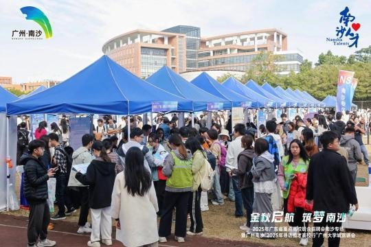 11月21日,“金秋启航”大湾区装备制造专场暨2025年广东省重点高校秋季联合招聘会在广州大学城华南理工大学体育场举行。活动由教育部与广东省教育厅指导,以政企校协同模式搭建高效人才对接桥梁,其中广州南沙组