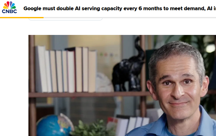 【环球网科技综合报道】11月22日消息,据外媒CNBC报道,谷歌云副总裁阿明・瓦赫达特在近期举办的全员会议上披露,为应对 AI 服务激增需求,公司需每6个月将基础设施服务能力翻倍,计划4-5年内实现1000倍增长。