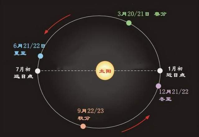 对于生活在北半球的我们而言,地球离太阳远(也就是位于远日点附近)的时候,太阳光的直射区域其实在“北回归线”附近,在这种情况下,北半球的地表单位面积接收到的太阳能量就更多,温度也就更高,于是我们就在过夏天。