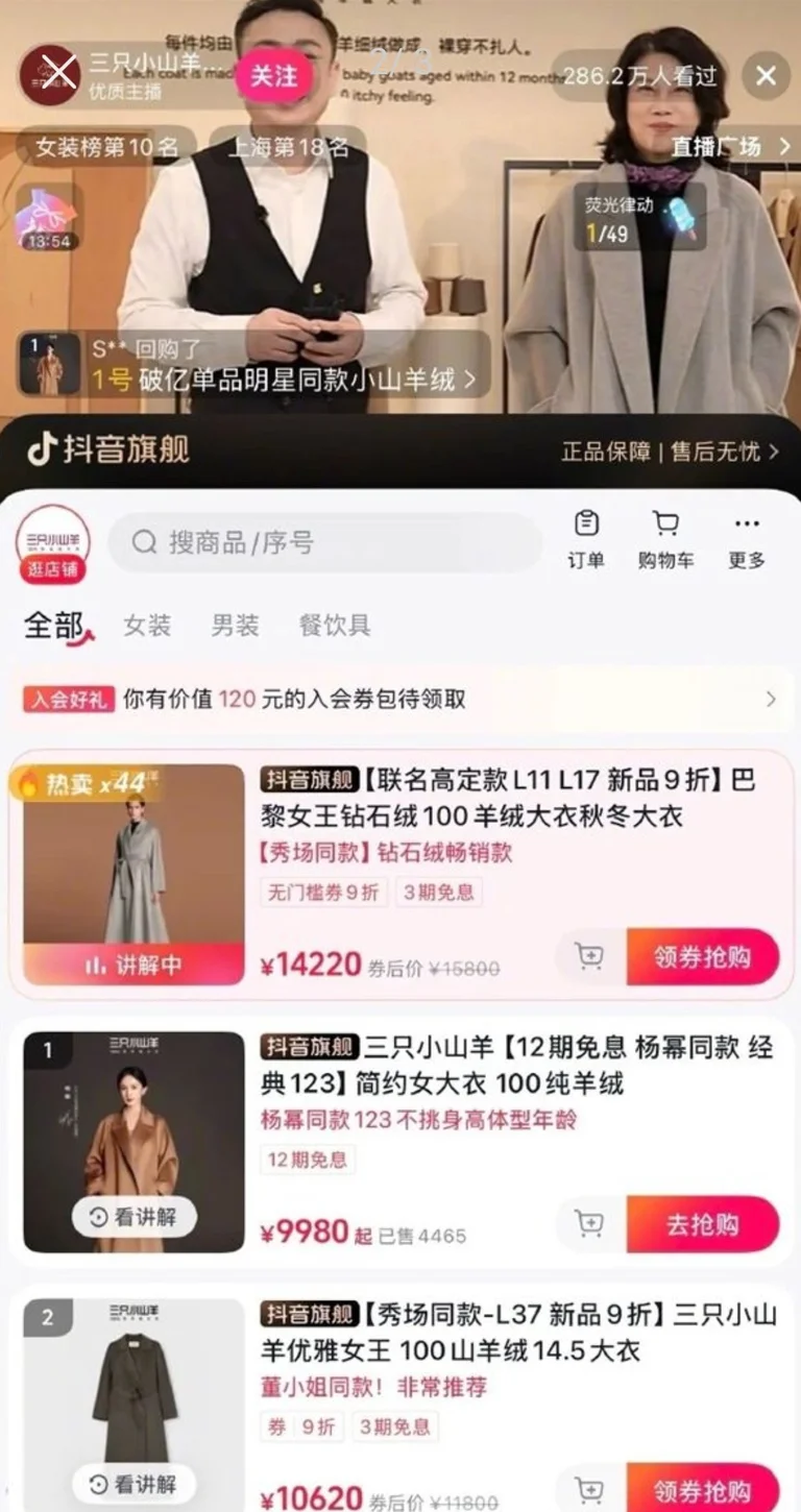 近日格力电器董事长董明珠现身“三只小山羊”直播间,亲自试穿多款羊绒大衣。71岁的她在镜头前展现优雅气质,带动直播间人气持续上升,冲至抖音女装榜前10名。