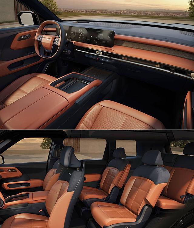此外透过车身尺码的放大,大改款 Telluride 车系也具备较前代更为宽敞的 3 排座椅乘坐空间,同时进入第 2 排及第 3 排座椅也更具便利性,原厂也强调透过多种材质及饰板的运用,让大改款 Telluride 车系拥有更为丰富的双色系内饰选择,在质感上亦较前代车款有着明显提升,而内装设计上也更趋近于起亚EV9 的造型,其中包含了由双 12.3 吋仪表及中控所构成的曲面荧幕,以及安置于方向盘后方的排档杆设计等。