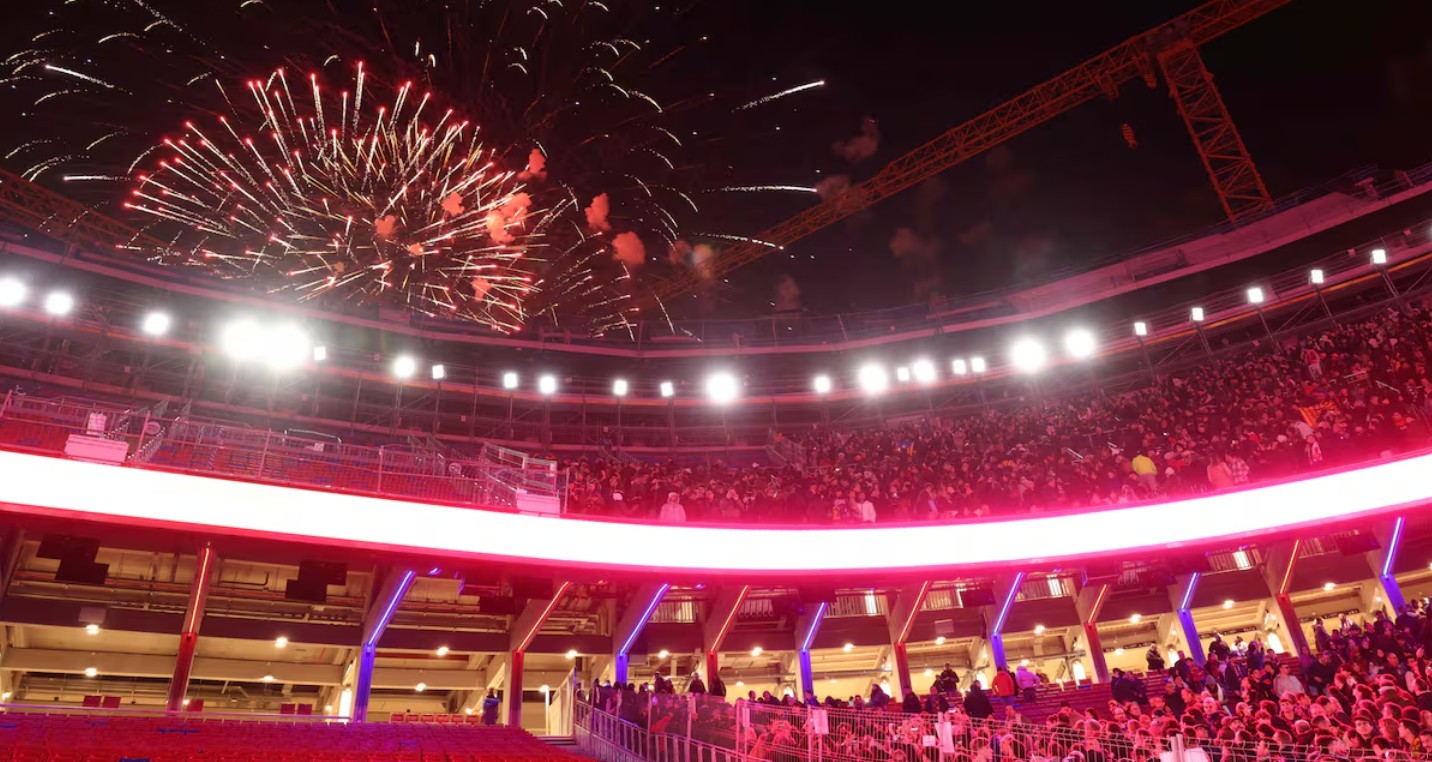 最后,烟花绽放,灯光秀璀璨夺目,Spotify诺坎普球场呈现出壮观景象,为这场庆典画上了圆满句号。