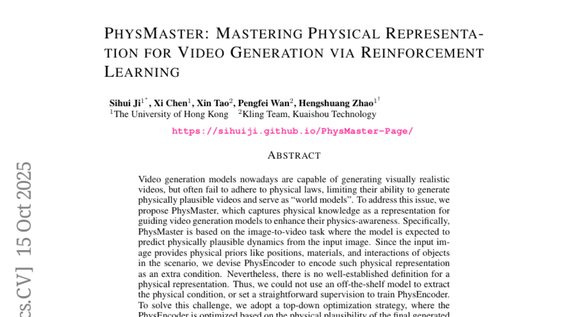 A:PhysMaster通过设计一个名为PhysEncoder的物理编码器来实现这一点。这个编码器能从输入图片中识别物体的材质、位置、相互关系等物理信息,然后将这些信息融入视频生成过程。由于无法直接定义什么是正确的物理表示,研究团队采用强化学习方法,通过让AI生成大量视频并根据是否符合物理规律来打分,从而训练编码器自动学会提取有用的物理特征。