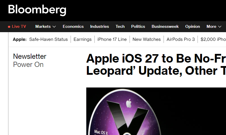 外媒曝光iOS 27核心升级:或对标经典 “雪豹”式研发