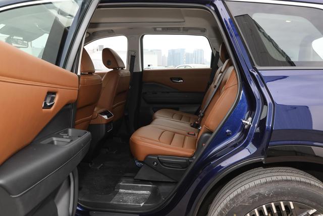 日产探陆整车给人的体量感还是比较足的,比较大气,魁梧,轮毂的造型也是比较特别,尾灯下方还提供品牌字母标识,车身尺寸方面,长宽高分别为5130x1981x1767毫米,轴距为2900毫米,空间方面,小编的身高为176厘米,调整好前排座椅后,第二排的腿部空间达到了3拳2指。