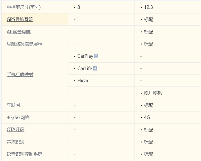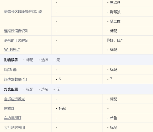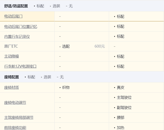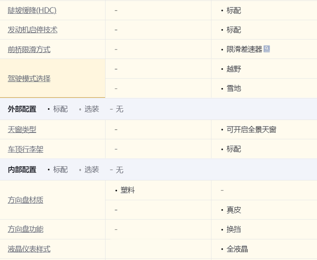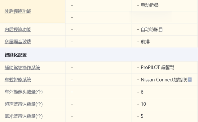 配置方面,日产探陆380VC-TURBO 四驱智驾版 七座和丰田汉兰达双擎 2.5L 两驱精英版 7座,价格相差5000元,具体配置请参考配置表,左侧为汉兰达,右侧为日产探陆。