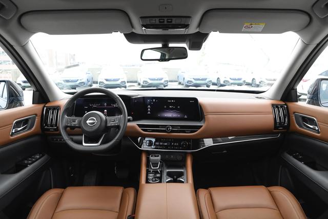 日产探陆在内饰方面,有着不错的氛围感和质感,全液晶仪表和中控屏幕的尺寸均为12.3英寸,换挡机构采用电子式,全系车型支持方向盘换挡,对于喜欢开车的驾驶员来说,比较友好。