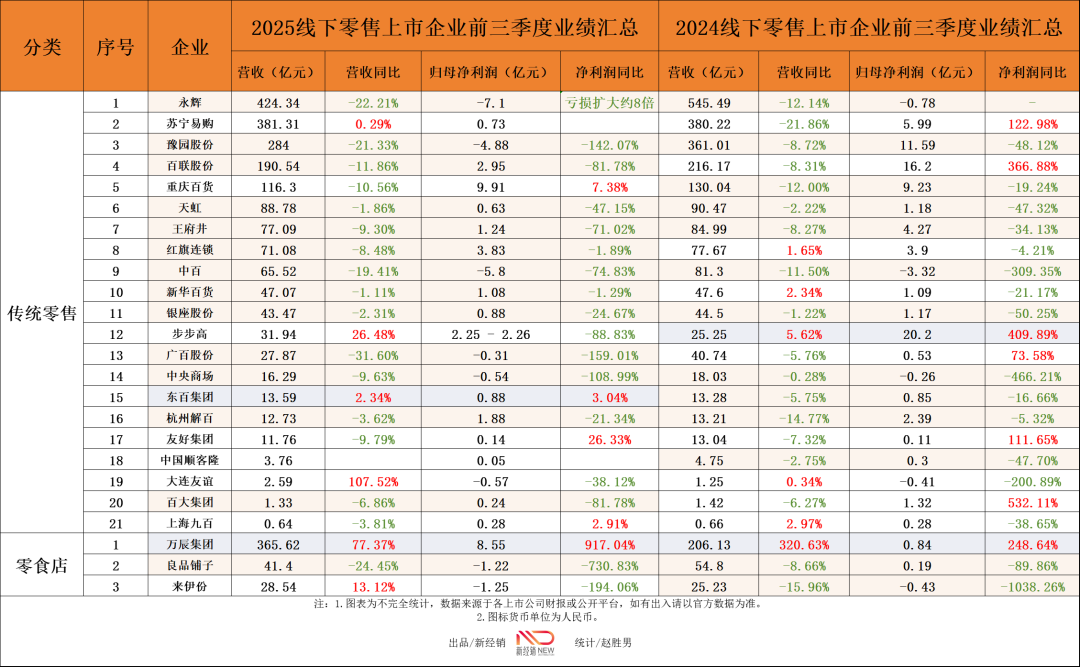 这些业态无一不在持续分流传统零售的客流,但并不意味着整个行业已失去希望。在行业整体承压的2025年前三季度,24家代表性企业中仍有4家实现了利润增长,更有2家企业顶住压力,实现了营收与利润的逆势双增。