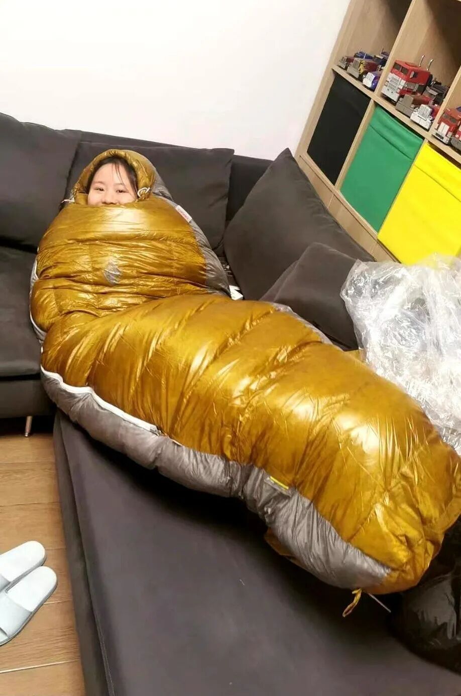 睡袋本身就自带超强保温属性,拉链一拉到顶,连帽设计把脑袋裹成蚕宝宝,不得不说这点子太新奇,也太会了。