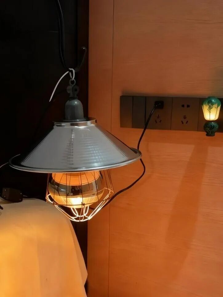 这灯原是养殖场给鸡崽供暖的,但跨界给人用后就成了性价比战神,原理跟浴霸灯没太大区别。