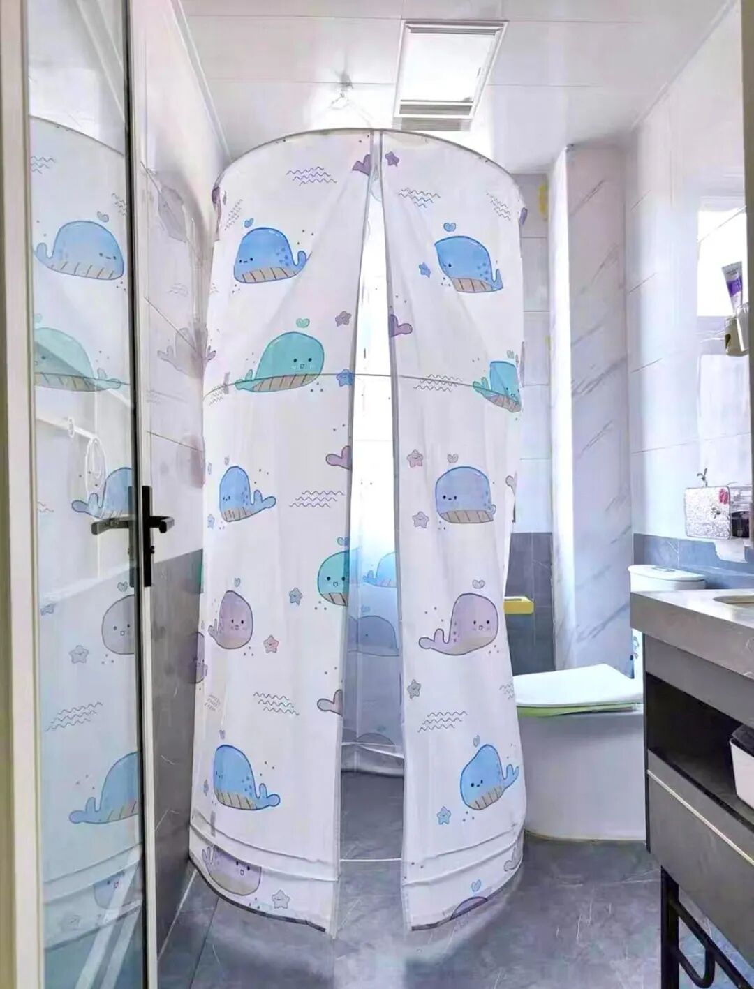 用的时候直接往浴室顶上一挂,把花洒从上面的小口穿进去,打开热水淋一会儿,洗澡的时候热气出不去就不会冷了,感觉暖乎乎的,再也不用在冷飕飕的浴室里硬扛了。