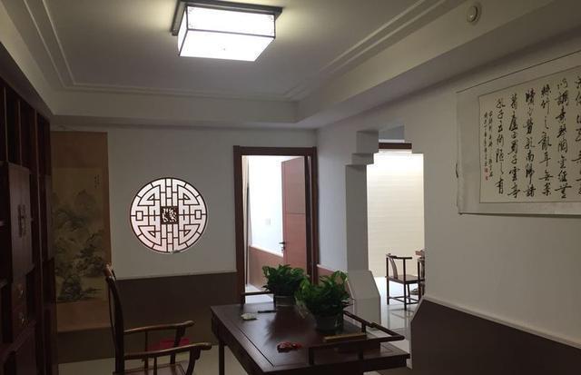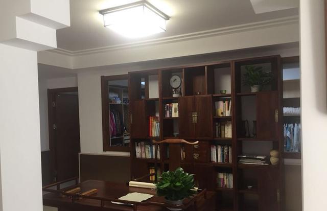地下室的区域是书房和茶室,这是书房,装修得还不错吧?古色古香的呢!