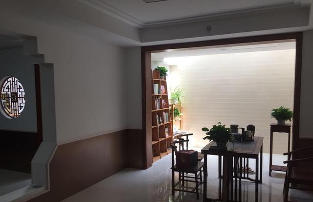 茶室有个采光窗,边上做了一个书架,然后绿植是少不了的,很有书香气又显得悠闲宁静。
