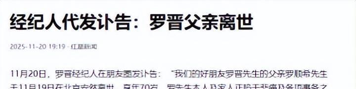 直到11月19日这天,一则讣告传出,众人这才明白,这对夫妻之所以长期分居,是因为罗晋的父亲病重,他需要留在北京照顾父亲。