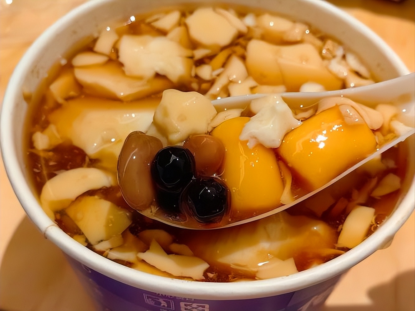 南方甜品店的甜豆花是解暑神器:雪白豆花晃悠悠的,浇上浓稠红糖浆,再铺层芋圆花生,豆香混着清甜,夏天吃一口透心凉。我福建朋友说,这是她的童年 “快乐水”。