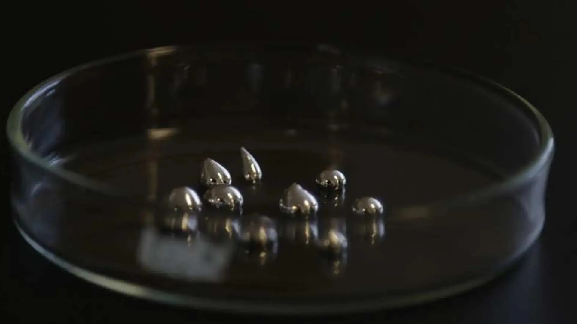像镓这样的液态金属使这一进展尤为引人注目。在室温下,镓看似固态,但略微加热至略高于体温时,它就会变成闪烁的液态金属。