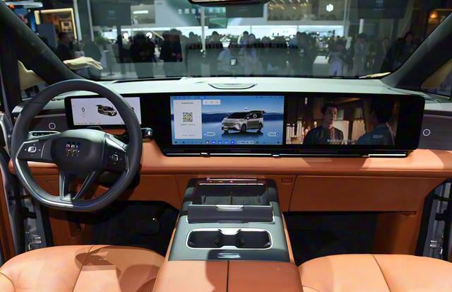 内饰方面,新车采用了三联屏设计,而且提供有三幅式多功能方向盘以及电子怀挡,操作台部分设计有无线充电面板以及带盖板的储物槽,整体内饰的氛围感营造的比较到位,AR-HUD抬头显示也没有缺席。