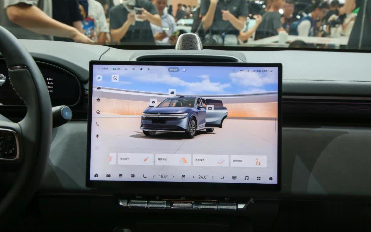 来到车内,新车采用双屏座舱设计,整个中控台的造型为常规的“T字”布局,与身体接触的地方采用大面积的软性面料包覆,方向盘采用三幅式设计,握持手感扎实,符合这个价位应有的用料水平。液晶仪表的尺寸为13.02英寸,UI背景通透简约,易读性还算不错。中控屏采用Mini LED材质拼装,UI功能布局合理,点触或滑动屏幕都有较快的响应,便捷实用性良好。在硬件配置上,车机内置骁龙8295芯片,在算力上相当于骁龙8155的3倍。中控屏的下方配置了5颗实体功能按键,其中包括自定义按键、音量大小调节、尾门开关等。