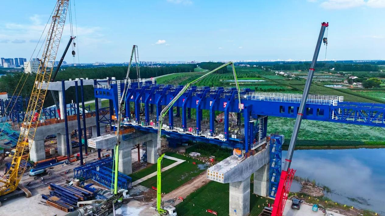 武汉双柳长江大桥上,项目团队自主研发的轻质超高性能混凝土(LUHPC)比普通混凝土轻20%,抗压强度却突破150兆帕,让大桥“轻装上阵”跨越天堑;龙潭长江大桥建设中,一体化智能筑塔机完成迭代升级,总体自重从第一代近500吨缩减至248吨,减重近半仍保持超高精度与稳定性;沪通铁路二期高桥特大桥创新采用无竖杆整体节点曲弦三角桁架结构,在确保刚度与稳定性的同时,实现总用钢量的精准管控……