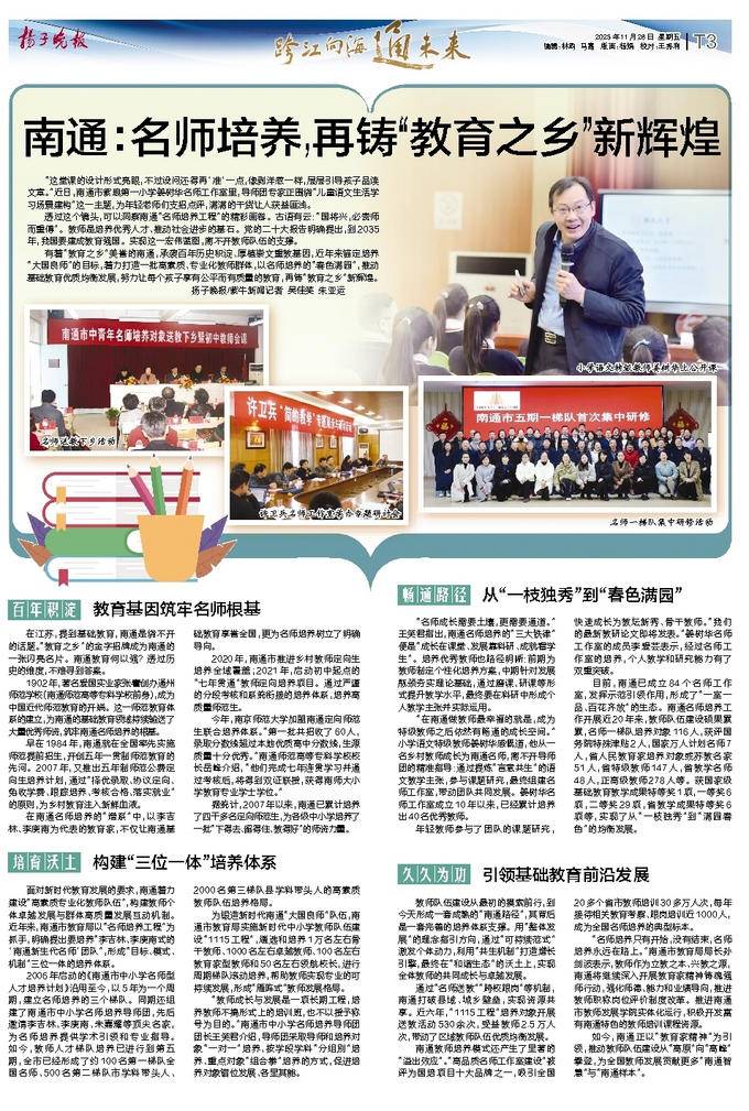 如今,南通正以“教育家精神”为引领,推动教师队伍建设从“高原”向“高峰”攀登,为全国教师发展贡献更多“南通智慧”与“南通样本”。