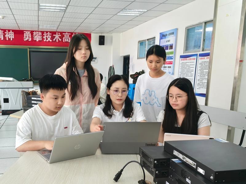 课堂上,刘定智因材施教,根据学生基础差异定制实操教学方案,让每位学子都能跟上成长节奏。“实操是课堂到社会最重要的衔接部分,其核心抓手就是竞赛。”在刘定智看来,竞赛的本质就是解决一个个技术难题,每一场比赛都指向一个真实的问题场景,要让技术技能在实战中“落地生根”。