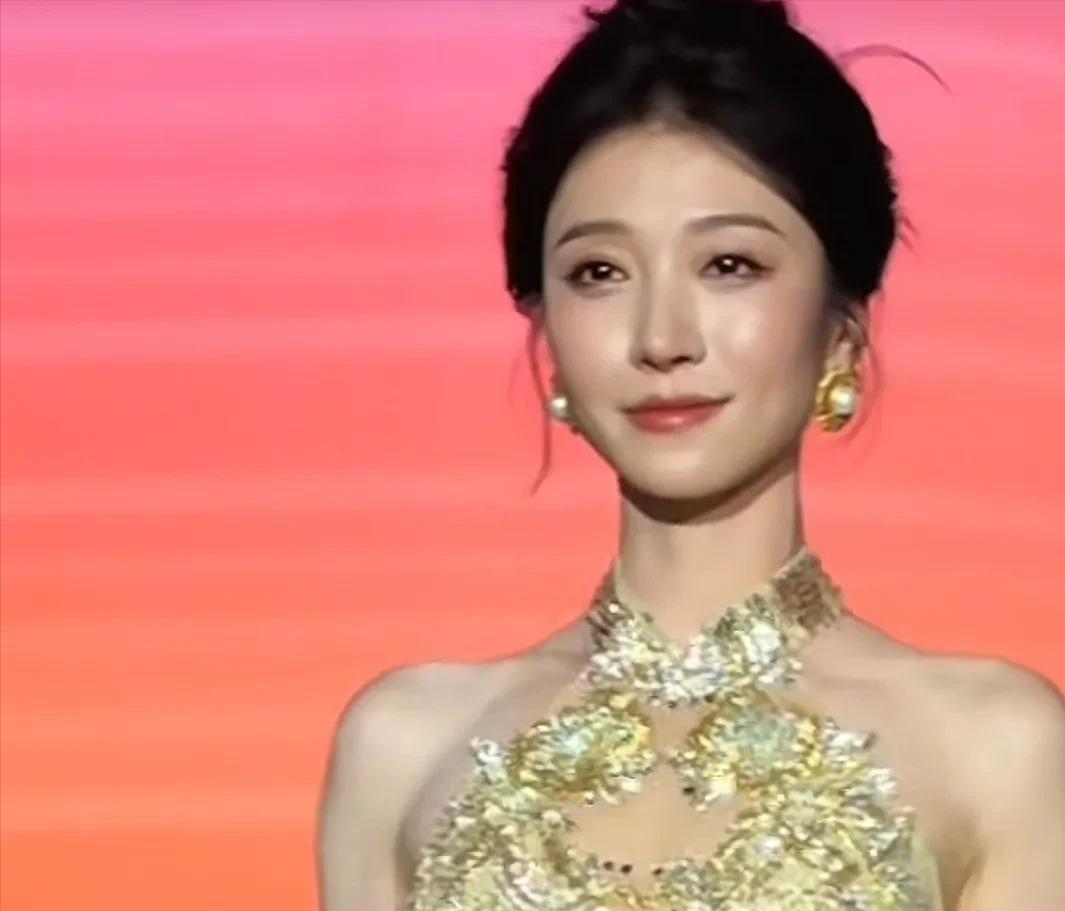这一晚,她的礼服是一件简约大方的中式连衣裙,搭配典雅的中式盘发,不落于俗套,营造出清新温婉的风格。