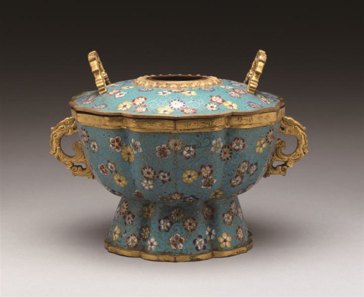 名称:清 掐丝珐琅花卉纹火锅
