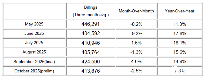 和前一个月份(2025年9月)相比,下滑2.5%,3个月来第二度呈现月减。