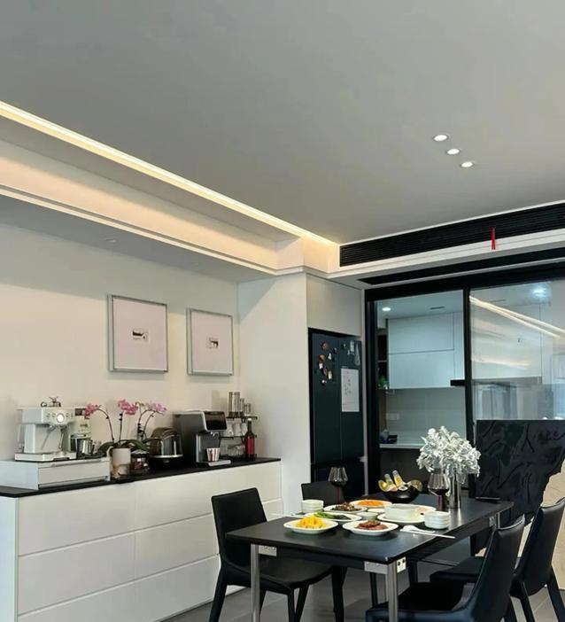 无主灯设计更是神来之笔,头顶没吊个大灯,反而用筒灯和灯带打光,晚上开灯像星星点点,氛围感拉满。