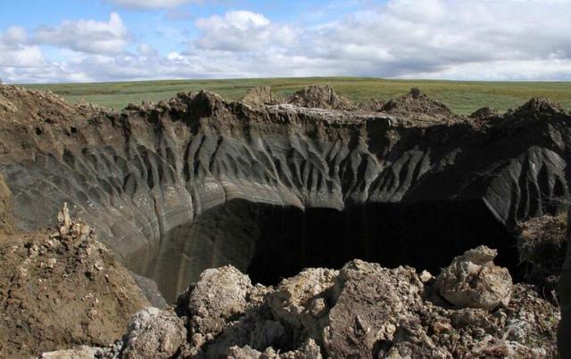 西伯利亚惊现50米深巨型坑洞,碎石泥土抛飞几百米外