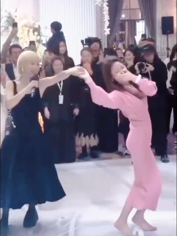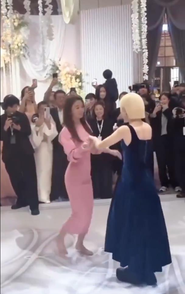 据网友 11 月 29 日爆料,在婚礼晚宴的高潮环节,主持人 Lulu(黄路梓茵)临时邀约助兴,林心如毫不犹豫地脱掉粉色高跟鞋,赤脚登场。她与 Lulu 牵手随音乐自在摇摆,现场宾客形容她笑容灿烂、动作洒脱,在疑似微醺的状态下还贴心屈膝配合舞伴身高,尽显温柔体贴。修身粉色长裙随舞步飞扬,49 岁的腰臀线条轻盈灵动——这组“光脚跳舞”的生图随即火遍社交平台,被网友盛赞为“浪漫与松弛感的天花板”。