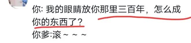 广西网友的神回复道破了天机:“你:我的眼睛放你那里三百年,怎么成你的东西了?你爹:滚~~~”