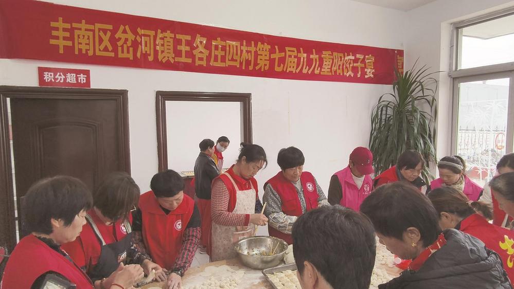 丰楠摄本报讯(闻铭)为弘扬中华民族尊老、敬老、爱老、助老的传统美德,重阳节当天,丰南区岔河镇王各庄四村村委会联合镇社工办、宣传办、妇联、文化站等多部门,举办第七届九九重阳饺子宴,为全村185名65岁以