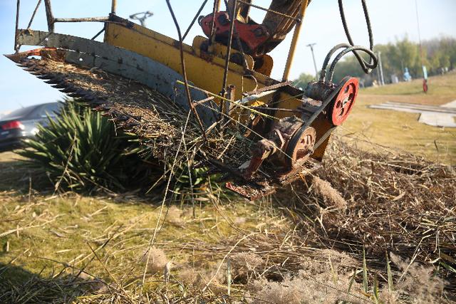 据悉,芦苇作为城市水系景观的“自然点缀”,在春夏时节为公园增添了野趣生机,但在秋冬季枯萎后却阻滞水流、影响整洁且存在火灾隐患,需要及时进行清理。长期以来,人工徒手清理的模式劳动强度大、效率低,工人还存在割伤等隐患,已难以适配城市绿化管护新需求。