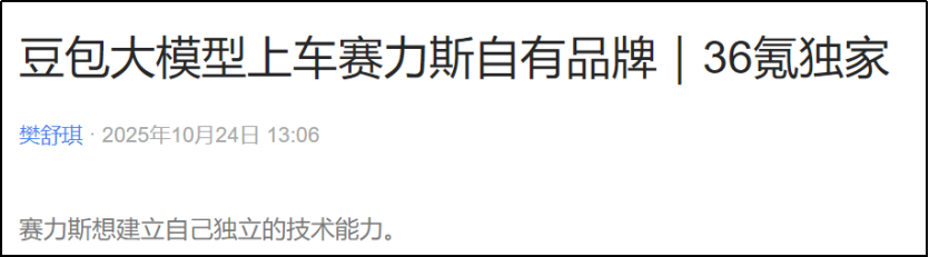 比如字节跳动。据36氪报道,字节旗下的火山引擎和赛力斯,在合作推动豆包大模型进入车机。