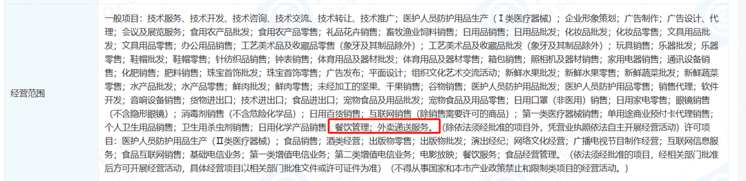 该公司经营范围新增餐饮管理、外卖递送服务、餐饮服务等。