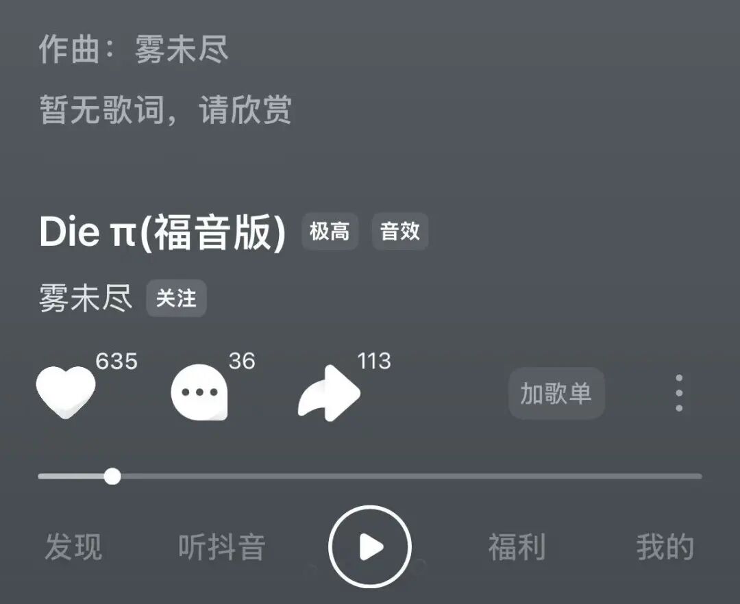 没有复杂的Tab 栏,切歌就是简单粗暴的上下滑,把抖音那套交互逻辑,原封不动地搬过来了。