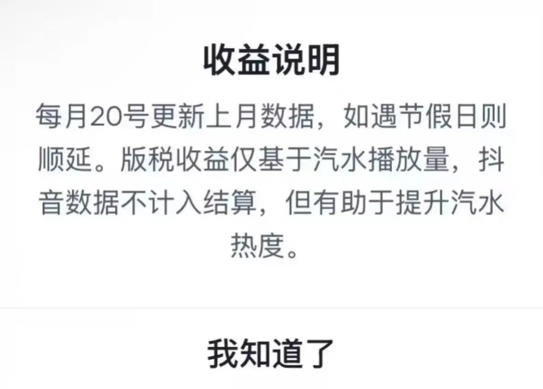 去问了几位原创音乐人才知道,汽水的版税收益,只基于汽水播放量,抖音数据不计入结算。