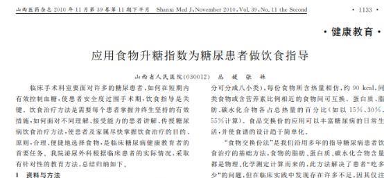 [1]丛媛.应用食物升糖指数为糖尿患者做饮食指导, 山西医药杂志(下半月刊) ,2010-11-25