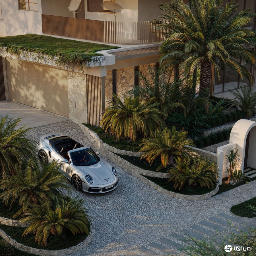 自然融合并非点缀,而是基石。许多当代住宅把绿植仅视作装饰性的框架,而这座别墅则将绿植直接嵌入建筑本体。繁茂的热带植被从露台边缘倾泻而下,缠绕于弧形墙面,并流入雕刻出的空洞。每一个阳台、柔和的拐角和过渡走道都与自然互动。这样的亲生物学设计恢复了建筑与自然的和谐,让居住者在与绿植、日光和空气的紧密对话中获得心理上的提升。内外空间融为一体,形成连续、呼吸的环境。