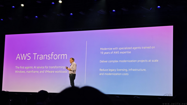 比如AWS Transform得到了进一步的升级。这是一个用于将老旧代码自动“现代化”的智能体。现在它加入了自定义特性,开发者只需一句话、一个命令,就能将过时的程序自动使用新版本的代码进行“重写”。请注意,这与单纯的“AI编程”并不一样,它并非完全靠智能体“无中生有”,而是可以学习原版程序的编程思路,对于一些已经长期停止更新,甚至开发者都放弃维护了的软件来说,它就显然尤为可贵。