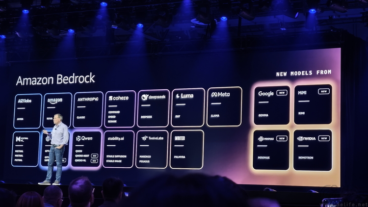 同时Bedrock也在不断地增强自身的“包容性”,今天AWS方面就正式宣布,来自谷歌、Kimi、MINIMAX和NVIDIA等多个企业的18款新模型在Bedrock“上架”。很显然,这也直接证明了如今Bedrock在AI开发领域的“行业地位”。
