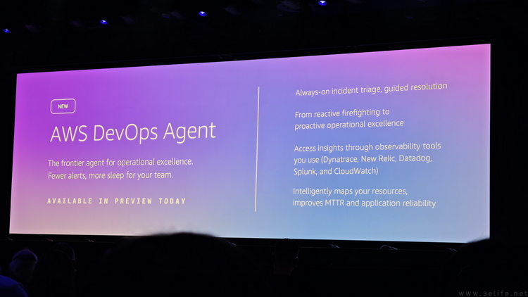 当然,对于已经上线的服务,AWS也推出了DevOps运维智能体,可以主动发现软件故障、提供解决方案建议。用AWS的话来说,它可以让软件团队“多睡一会儿”。