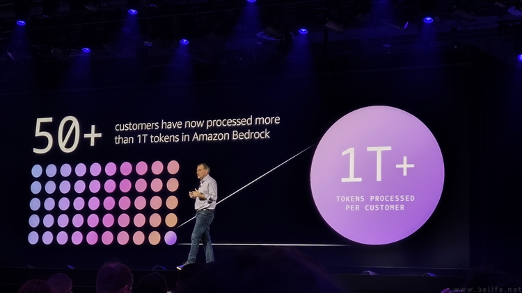 Matt Garman公布的相关数据显示,Bedrock已经成为一些行业巨头AI服务背后的“贤内助”。有超过50家AWS的客户在Bedrock上处理超过1万亿数量级的Tokens。