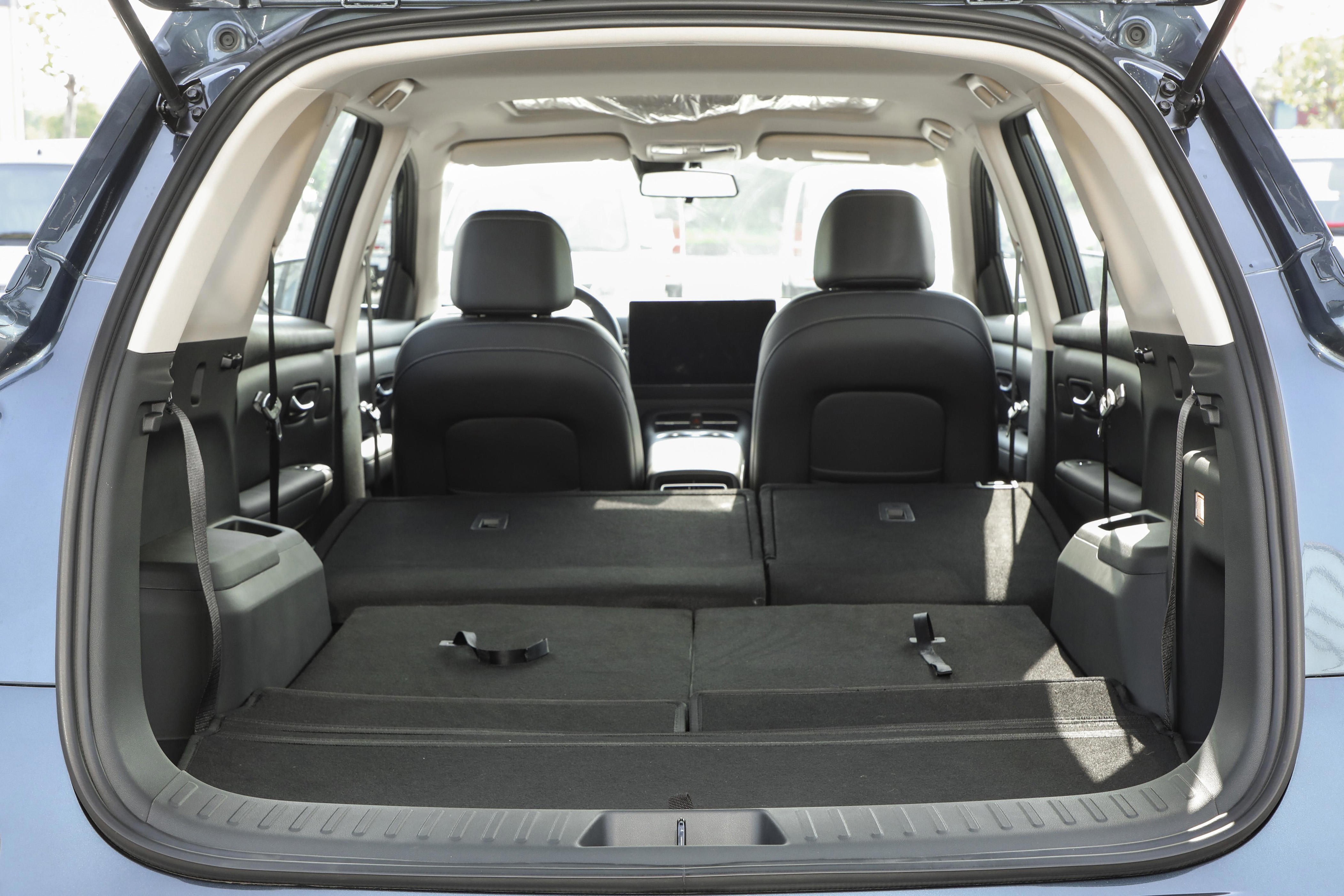 7 座版本的第三排空间超出了我的预期,不少同价位 7 座车型的第三排常被视为 “应急备用”,但这款车的第三排头部空间为 835mm,腿部空间 785mm,我身高 175cm,坐在第三排时,头部不会碰到车顶,膝盖也不会紧贴第二排座椅,即便乘坐 1 小时以上,也不会有明显局促感。座椅布局的灵活性也值得一提,支持 1-7 座多种场景调整:情侣短途出行时,可放倒后排座椅,腾出足够空间放置行李箱与露营装备;三代同堂出行时,7 座布局能让每位成员都有独立乘坐空间;若需搬运大件物品,将第二、三排座椅全部放倒后,后备箱容积可拓展至 1694L,上次帮家人搬运婴儿车与折叠床时,轻松完成装载。此外,车内设计了 33 个储物空间,门板储物格可容纳 500ml 水瓶与折叠伞,中控下方的储物槽能同时放置手机与车钥匙,这些细节设计减少了日常物品的摆放杂乱感。