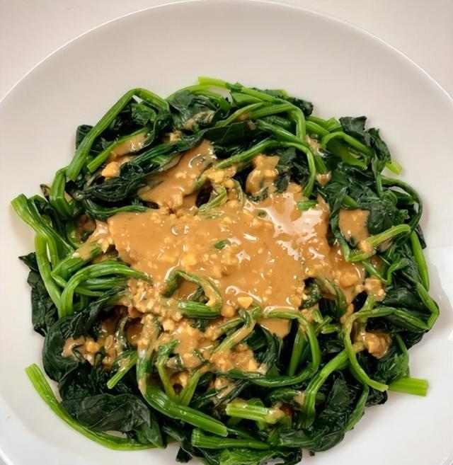 所需食材:菠菜200克、芝麻酱2勺、生抽1勺、香醋1勺、蒜末1勺、白糖半勺、盐适量、熟白芝麻少许、香油少许。