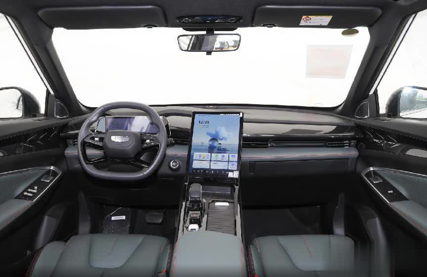 内饰部分的设计比较吸引眼球,车内采用了大面积的阿勒泰青面料进行装饰,细节融入红色的缝线拼搭过渡转折,突出了层次感分明的设计感。四幅式多功能方向盘握持手感扎实,将主驾驶座椅调整到最低位置也能比较容易地看到液晶仪表,使用起来比较方便。13.2英寸中控屏朝向主驾驶位置倾斜,屏幕分辨率达到1440x1920,屏幕观感通透,UI界面的设计符合主流审美,有着较好的易读性。在车机基础功能方面,提供HUAWEI Hicar、CarLink、4G车联网、OTA升级、GPS导航、语音识别控制、应用商店等,满足日常娱乐功能需求没问题。