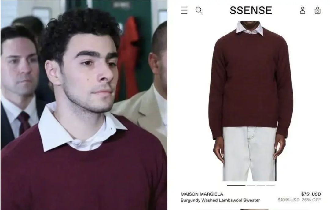 前段时间那位号称“全美最帅囚犯”公子哥路易吉在接受审讯时,据传穿的就是马吉拉男装羊毛衫。