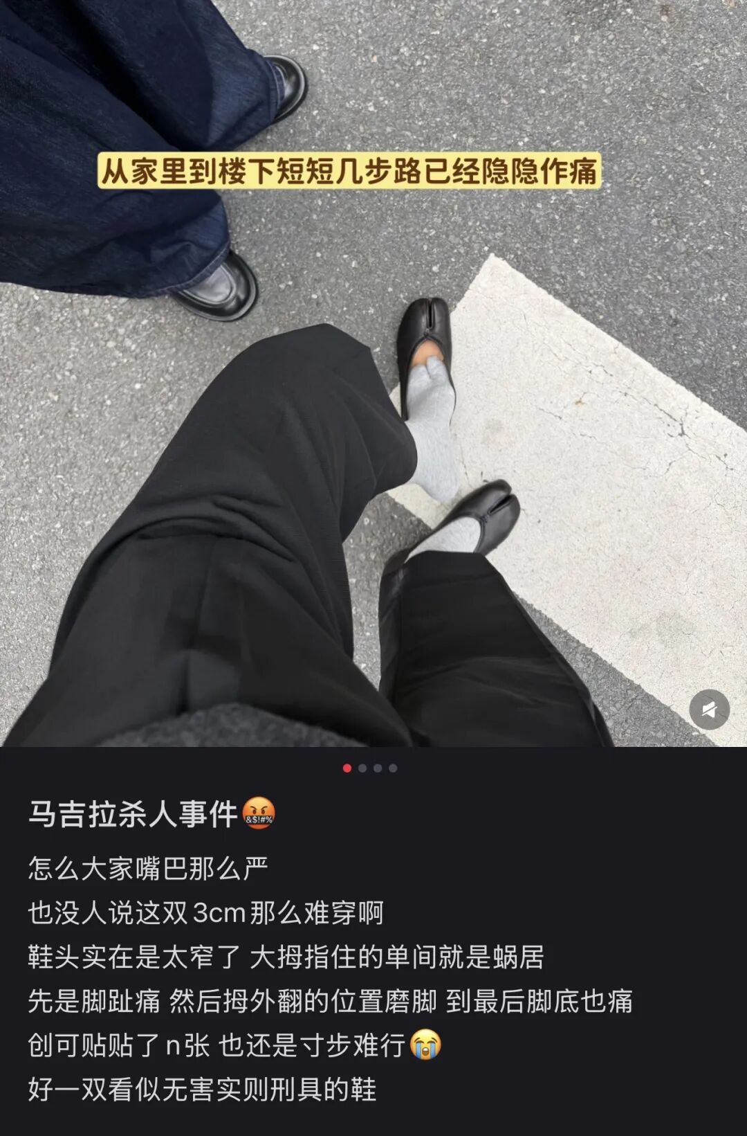 有位没受过训练的朋友买了一双3cm低跟马吉拉,刚下电梯,脚就已经力竭了,突出一个“寸步难行”。